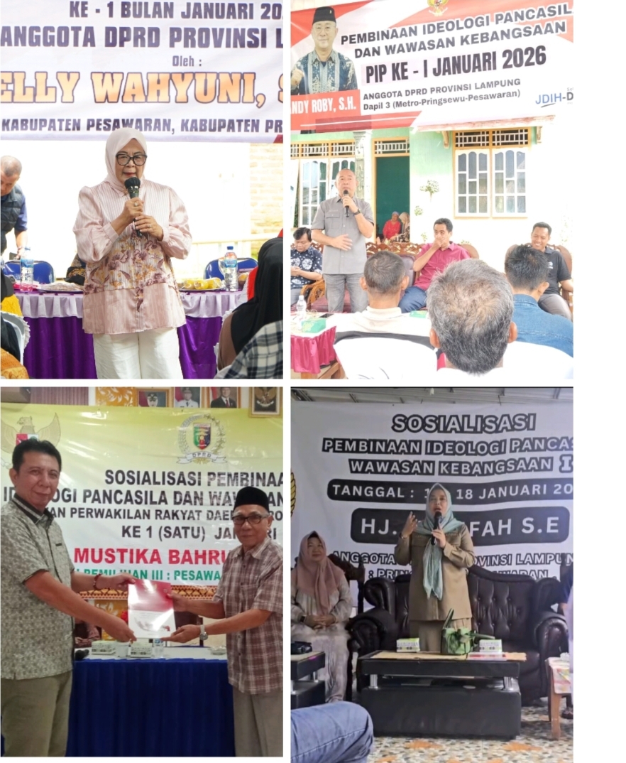 DPRD Provinsi Lampung Dapil III (Pringsewu, Pesawaran, Metro) Gelar Sosialisasi Pembinaan Ideologi PancasilaBandar Lampung — DPRD Provinsi Lampung melaksanakan kegiatan Sosialisasi Pembinaan Ideologi Pancasila pada 17–18 Januari 2026.